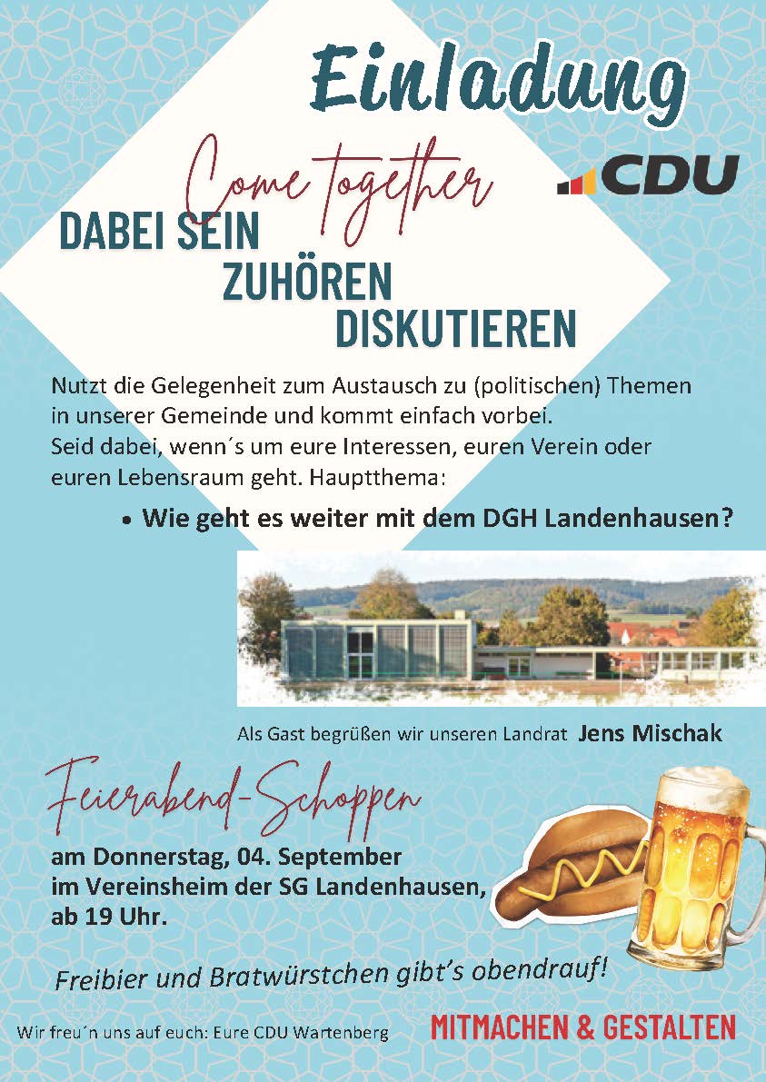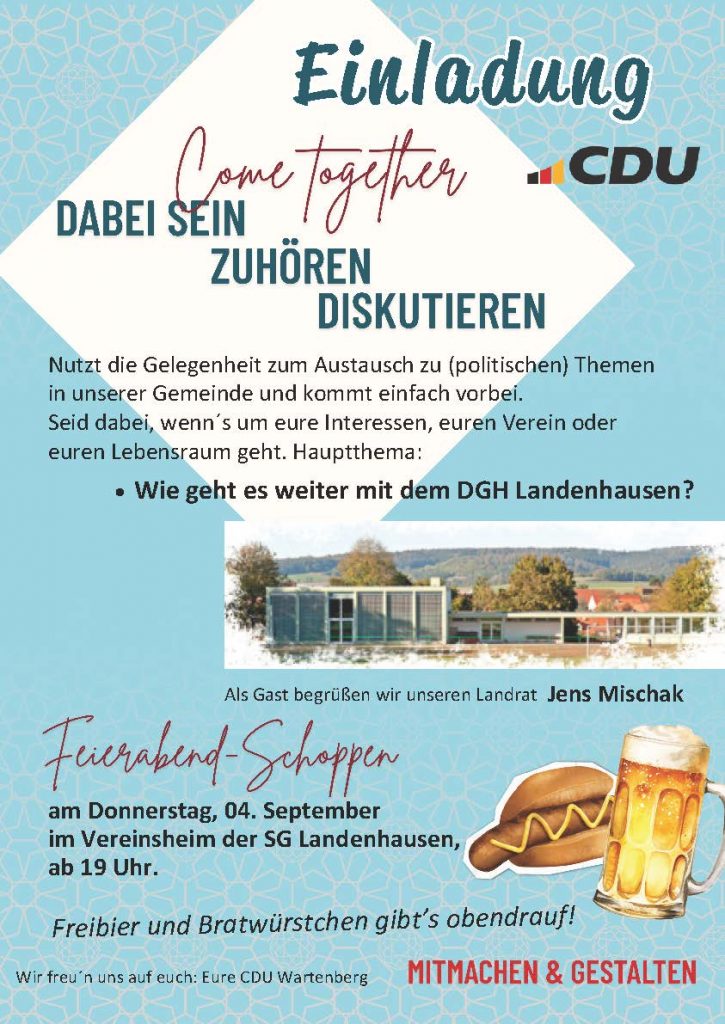am kommenden Donnerstag findet ein durch die CDU organisierter Feierabendschoppen an unserem SpoZe statt.